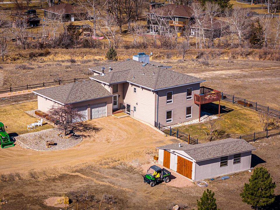 Nestled at the end of a tranquil cul-de-sac, 1016 Meadowridge Court in western Larimer County, offers a blend of rural charm and modern amenities. Set on an expansive 1.94- acre lot, this property provides incredible views, ample space for outdoor activities, and the opportunity to observe local wildlife including elk, deer, and turkey.The residence features four spacious bedrooms and two full bathrooms within the 2,518 square feet of living space. The upper level boasts a living room, dining area, and a kitchen equipped with quartz countertops, a pantry, and included appliances. A double-sided fireplace connects the dining and living rooms, creating a warm and inviting atmosphere. The primary bedroom offers direct access to a deck with views of the iconic Devils Backbone. The lower level includes family and recreation rooms, an additional double-sided fireplace, and three bedrooms, providing ample space for relaxation and entertainment. The home is heated by hot water baseboard heat and cooled by Mitsubishi mini-split systems, ensuring year-round comfort. Additional features include a whole-house fan and a wood stove in the entryway. The fenced backyard encompasses a garden area, perfect for cultivating your own produce or flowers. Horses are permitted on the property, adding to its rural appeal. A standout feature is the 1,536-square-foot shop with a heated interior workshop area complete with LED lighting, full power, insulation, and a French cleat system. A loft area over the heated shop is convenient for storage. The shop's large door accommodates RV access and storage, making it ideal for hobbyists or those requiring substantial workspace. An additional 330-square-foot storage building with doors offers extra equipment parking or tool storage solutions. The attached oversized two-car garage provides convenient parking and storage options. 1016 Meadowridge Court in Loveland, Colorado, is ideally situated for outdoor enthusiasts, offering a wealth of recreation opportunities just minutes from home. Nearby Recreation Opportunities: 1. Devil's Backbone Open Space (≈ 5 minutes away) One of the most iconic landmarks in the Loveland area, Devil's Backbone offers miles of scenic hiking, biking, and horseback riding trails. The striking rock formations and panoramic views make it a favorite spot for nature lovers and photographers. 2. Horsetooth Reservoir (≈ 20 minutes away) A popular destination for boating, fishing, paddleboarding, and swimming, Horsetooth Reservoir is a must-visit for water recreation. The surrounding trails also provide excellent hiking, mountain biking, and rock climbing opportunities. 3. Carter Lake (≈ 15 minutes away) Another great spot for water activities, Carter Lake is known for fishing, sailing, and camping. It's a peaceful escape with stunning views and plenty of space for picnicking and relaxing. 4. Rocky Mountain National Park (≈ 45 minutes away) For those looking for a true mountain adventure, Rocky Mountain National Park offers world-class hiking, wildlife viewing, and scenic drives. Whether you want to summit Longs Peak or enjoy a leisurely drive on Trail Ridge Road, the park provides endless outdoor exploration. The newly installed xeric landscape includes drip irrigated and mulched berms and efficiently irrigated bluegrass. The automated irrigation system is friendly and has an integrated rain sensor. An irrigation mainline encircles the whole property with strategically located pressurized quick couplers for supplemental irrigation of drought tolerant grasses. Utilities are from Little Thompson Water District, Excel Energy natural gas, and PVREA electric power.