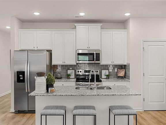 Quik Move-In Modern Luxury Edmund plan Townhome in Rivershire Place. Nestled in the sought-after Villa Rica area, Rivershire Place offers a harmonious blend of modern living and convenience. This meticulously designed townhome features an open-concept layout, high ceilings, and a smart home technology package. Modern kitchen with stainless steel appliances, 42" Gray cabinets, tile backsplash, granite countertops, large island, and pantry. Oversized owners' suite with walk-in closet and spa-like ensuite bathroom with oversized shower. All rooms equipped with 2" faux wood blinds. Conveniently located just minutes from I-20 and Downtown Villa Rica, offering diverse dining options. A short drive to Sweetwater Creek and Arbor Place Mall adds to the appeal of this vibrant community. Please schedule an appointment to tour our decorated model homes. Interior photos are stock photos of the decorated model home with the same floor plan.