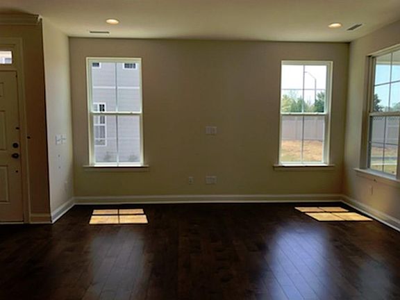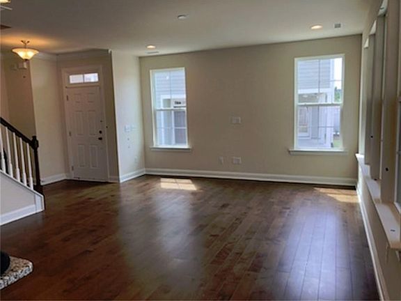 THIS END UNIT TOWNHOME feels like a single family, close to Apple Campus, in Town Hall North . Great neighbor hood off of McCrimmon Pkwy.4 bedroom, 3 baths, 2 car garage beauty. Guest suite with Full Bath room on first floor. Gorgeous hardwoods on 1st floor. Chef's gourmet kitchen with granite, tile backsplash, gas cooktop and stainless steel appliances. Huge master bedroom and large secondary bedrooms. Beautiful master bath. Ref, washer & dryer included. min to RTP & RDU, 40 & 540 & shopping. Great schools! Driveway fits more cars! Home is equipped with EV charger. Available10/15/24. NO PETS!
