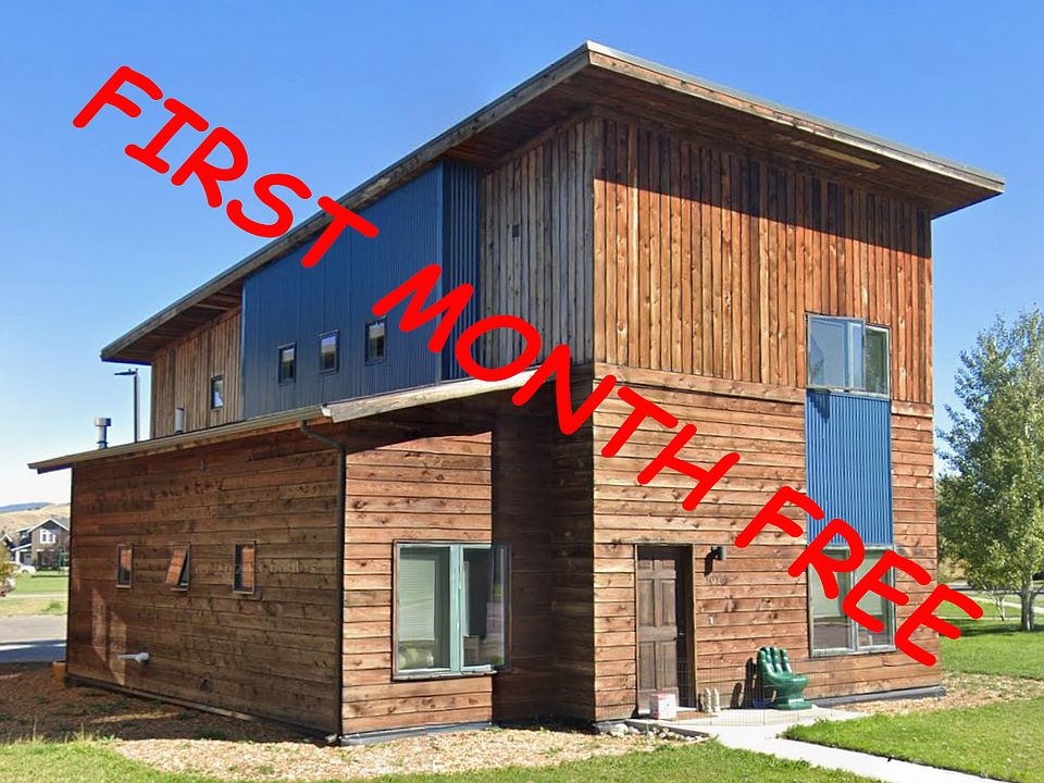 Free First Month on 12 Month Lease. 1,875 SF 3 bed plus office home in central Bozeman, blocks from the grocery store and high school. Across the street from a park and a second park a block away. Hardwood, concrete or tile flooring throughout. 3 full bedrooms, one office, one flex space, large two car garage. Queen sized bed platform in one of the bedrooms. Pets ok with a pet deposit and pet rental fee (depends on qty and size of pets). Washer and dryer included. Master bedroom deck with views of the Bridgers. Tenants pay all utilities and are responsible for lawn maintenance and snow removal. Photos and drawings are of similar home. Fence Negotiable.