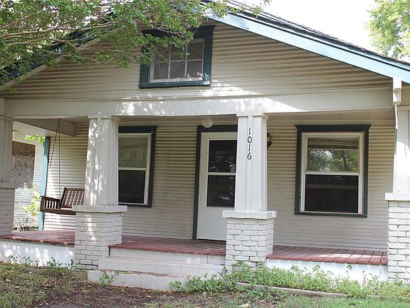 Sold AS IS. House is currently liveable but will need some floor work. 3 bedrooms, 1 bath, C/H/A. Large living w/ decorative fireplace, formal dining room w/ 9+ ceilings. All bedrooms oversized. Great covered front porch. Detached garage. Fenced backyard. 3 blocks from elementary school and park/splash park. Price is firm.