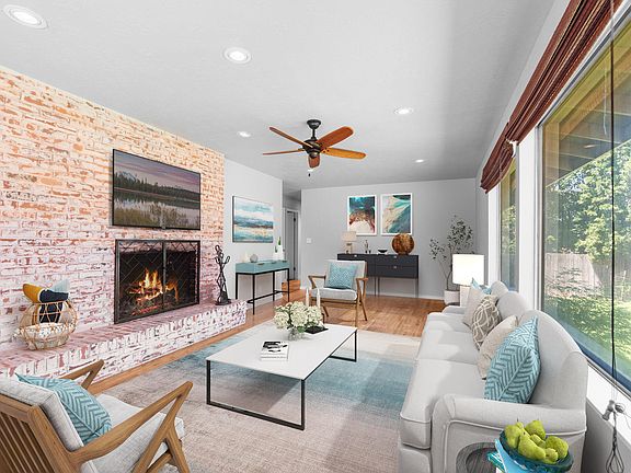 Welcome to your midcentury charmer in the heart of midtown! This 1960's ranch boasts a prime location backing to the serene Goodrich Park, offering privacy and a spacious feel. Step inside to discover an open kitchen with tile counters and a breakfast bar, complemented by beautiful original oak hardwood floors. Cozy up by the big fireplace in the living room and bask in the abundant natural light streaming through the many windows, offering picturesque views of the landscaped fenced backyard. This home also features gas forced air heat, new tankless water heater, can lights, an attached oversized two-car garage, & additional parking space in the front for your vehicles or toys. With 3 bedrooms and 2 bathrooms, this property is not only in good condition but also conveniently located just blocks away from Pilot Butte, Juniper Swim & Fitness Center, schools, and an array of great restaurants. Don't miss the opportunity to make this midtown gem your own and enjoy the best of Bend living.