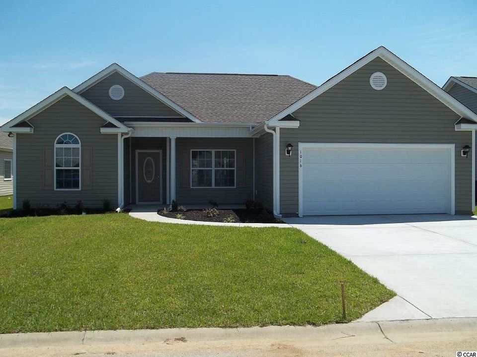 This 3 bedroom home has split bedrooms, a relaxing covered front porch and a rear screened porch. Open floor plan with vaulted ceilings in the dining area and great room. Kitchen has breakfast nook with bay window, breakfast counter, stainless steel appliances. Laundry room. Master suite has tray ceiling, ceiling fan with light, walk in closet, 5 ft walk in shower and linen closet. Upgraded carpet. Smooth ceilings, 30 year architectural roof shingles, gutters, sodded yard, fully finished and painted garages with automatic door opener and pull down stairs to attics storage. Gated community, pool and clubhouse, close to North Myrtle Beach, shopping, dining, etc. Photos and video are for illustrative purposes only and may be of similar home built elsewhere. Square footage is approximate and not guaranteed. Buyer is responsible for verification.