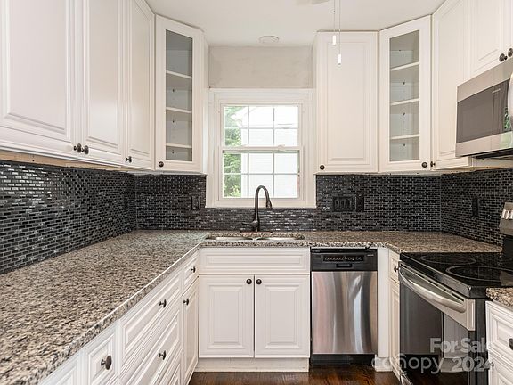 Beautifully renovated full brick home w/ additional living quarters in fully finished basement. Home is in North East Charlotte less than 10 minutes to Uptown + quick access to I-77 & I-485. Home welcomes you in past covered front porch w/ ceiling fan perfect for enjoying cooler evenings. Main floor has hardwood floors & recessed lighting throughout w/ an open dining & kitchen area. Kitchen has granite counters, tasteful backsplash, bright white cabinets & matching S.S appliances. Spacious primary suite w/ tray ceiling & stunning ensuite including dual sinks & walk-in shower w/ water jets & bench. Guest bed & full bath for family/guests. Stunning basement level offers open living areas w/ endless potential. Brick fireplace & kitchenette are perfect for hosting family events. 2 bedrooms and a full hall bath perfect for guests plus large windows throughout ensure the lower level stays bright & open! Double glass doors lead to patio walk-out w/ large fully fenced yard + upper level deck.
