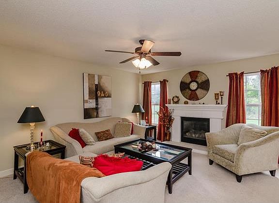 BACK ON MARKET!!LOVELY TWO STORY VILLA, only 9 years old. Walk into the COZY living room with a gas log fireplace that opens to a nice breakfast area with sliding doors to the back patio. Delightful kitchen with lots of maple cabinets, flat top electric stove, microwave, dishwasher and refrigerator (all stay). You will enjoy the charming guest bath on the main level. UPSTAIRS you will find a large master bedroom with two walk-in closets, and master bath with a large shower, tall vanity and separate bathtub (bronze faucets and handles). There are two additional nice size bedrooms with walk in closets, a large hall bathroom and handy laundry room. Lower basement area has a perfect family room for relaxing, additional 1/2 bath and storage area. This low maintenance home has lots of sq. footage for the money. Hurry and don't miss out! Homeowner pays approximately $25.00 per month for yard mowing and trimming.
