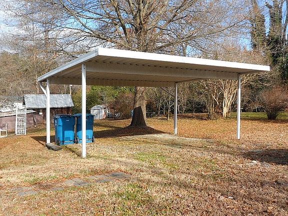 Three bedroom, 1 bath bungalow style home. Laminate flooring. Ceramic tile kitchen counter tops. New metal roof. Dishwasher, range, hood, refrigerator, washer & dryer all stay. Double metal carport. Detached storage buildings. Partial basement with laundry area. Enclosed porch off of basement. Large 0.58 acre lot.