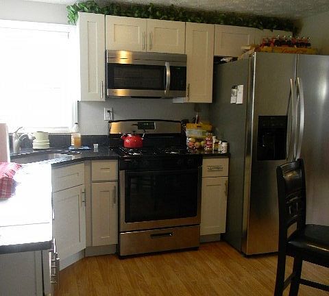 Ranch Easy to step into this updated ranch with wonderful yard,new kithcen cabinets with granite counter tops and updated bathroom subway tile including a mosaic inlay and more, relaxing family room with wall of windows and doors overlooking a level fenced yard with fruit trees,