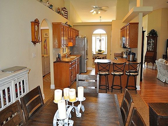 Highly desirable PebbleCreek subdivision . Custom built by Gooden home. Fullbrick,fortified windows throughout. Light, open airy. Meticulous 4 bedroom 3 full baths, 3 living areas, separate formal dining room, 22' vaulted family . Bull nosed archways throughout.Toggle light switches throughout. Custom prism mirrors over dual wood burning fireplace with wood mantle.Large separate dining room, huge family room with dual sided 20' floor to ceiling wood burning fireplace with glass doors. Office /study/media room with dual French doors .3rd living area has dual fireplace, overlooks screened patio with ceiling fan open to large yard, ideal for "toys of all ages. ,2nd office, game media study with dual fireplace. Gourmet kitchen with vaulted ceiling, great enclosed pantry abundance of cabinets .All new stainless steel appliances, stove, micro, dishwasher ,French door stainless steel refrigerator with door water and ice (negotiable). Breakfast bar, separate vaulted kitchen eating area seats 8'+ overlooks huge fenced yard with access door to large screened porch with ceiling fan and separate door access to fenced yard. Oversize gate access. 11 ceiling fans with light kits. Large master with sitting area , master bath with new granite dual vanities. 6'x14 custom prism mirrors. Separate over sized shower . Large soaking /garden tub. Large walk in closet with custom shelving, shoe cabinets remain. Mother in law plan. Bedroom 2 has full bath with new stone surface vanity. Large bedrooms 3&4 share full bath with abundance of storage, great bedroom closet space. Neutral light hardwoods throughout. No carpet. Custom interior solid wood 2 1/2" plantation shutters with stainless steel hinges throughout. ($7,000). Huge oversized side entry garage with attached shelving . Rear yard has numerous fruit bearing trees. New attic flooring . Rain bird sprinkler system. Flood insurance not required. Current homeowners insurance under $850 with minimal deductible.