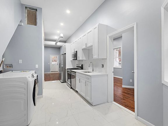 Welcome to this beautifully renovated apartment featuring a full gut renovation from top to bottom. Everything is brand new! 2 bedrooms/1 full bath. Updated with sleek finishes and contemporary fixtures. All-New Kitchen with brand new appliances, cabinetry, and countertops. New Appliances: Including a brand-new washer and dryer in-unit for added convenience. The layout is designed to maximize space and light, offering a bright, airy feel throughout. Use of yard.