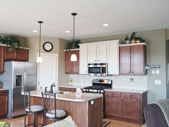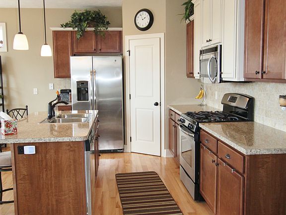Beautiful, immaculately maintained home in the actively growing community of Cook's Crossing. This 3 bedroom, 2 bath walkout home offers a comfortable and popular ranch floor plan with main floor laundry, gorgeous designer kitchen with huge walk-in pantry, stainless steel appliances, 9 ft ceilings, cottage trim, and many more upgrades! Double sinks in master bath. Back saver counter tops in both baths. Perfect for casual or elegant entertaining. Many large, south facing windows for plenty of natural sunlight. Garage bump out for extra storage space, designer wall colors, large finished rec room (25ft x 18 ft) in walkout level with potential for TWO additional bedrooms, or bedroom and media room PLUS another bath. Energy Star certified for low heating and cooling bills. Ceiling fans in every room. Overlooks green-space, a gentle flowing creek and walking trail which will connect to the local trail system. Walking distance to Byron Center Countryside Elementary and minutes from Metro Hospital/local amenities. The community entryway features mature landscaping and a gazebo overlooking a peaceful pond. The community also features 2 playgrounds. Professionally landscaped with mature trees and plants and underground sprinkling, Backyard fire-pit and porch swing, perfect for entertaining.