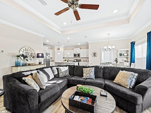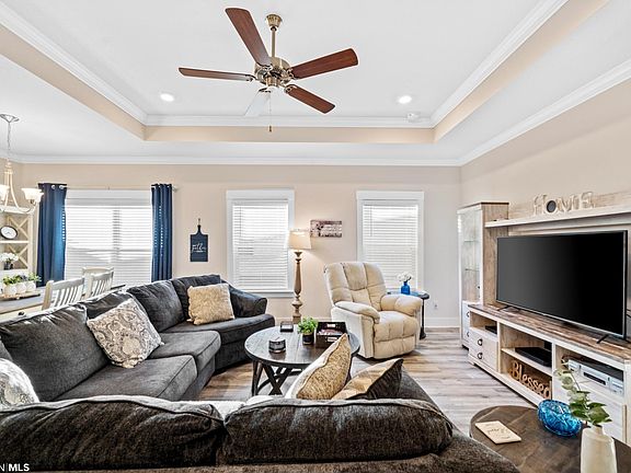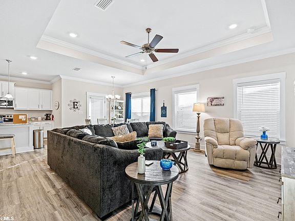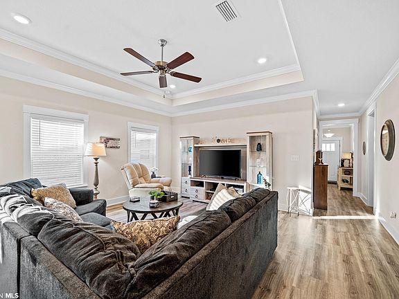 Ideal Foley location! This community is conveniently located close to the Tanger Outlet Mall, OWA, restaurants, and is just minutes from the white sandy beaches. This upgraded Gold Fortified home features 9' ceilings throughout, granite countertops, crown molding, and beautiful luxury vinyl plank flooring. The kitchen is equipped with a large island, stainless steel appliances, and pantry. The master suite is separated from the other bedrooms making it more private. The master bath offers a garden tub, separate shower, and a large walk in closet. Other features include a fenced backyard, covered patio, and double garage.