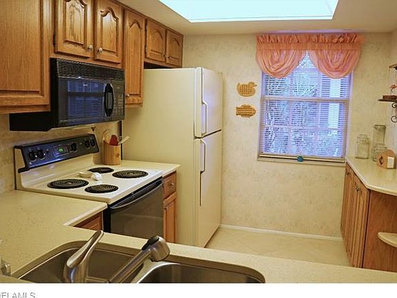 One of Naples' best kept secretes. 2BR/2BA water view villa with carport and external storage. Perfect for the full-time or seasonal resident. Wood cabinetry, solid surface counter top, tile flooring in the main living area. One year, seller paid home warranty makes this a great buy! Furnishings are negotiable.