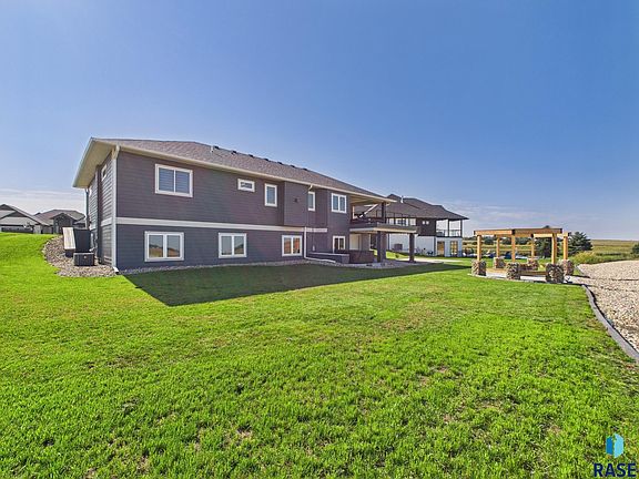 Like new 6 bedroom ranch home with over 4000 finished sq ft on over half acre lot just off the Dell Rapids Rocky Run Golf Course! Come and see for yourself how great this home is. From the covered front porch to the covered back deck and everything in between, your family will have plenty of room to sprawl out. The sunlight filled main floor has vaulted ceilings and an open floor plan. The design of the home is well thought out with high end finishes. 4 fully finished garage stalls including a lower level stall with backyard access. The kitchen features glass tile backsplash, stainless steel appliances, quartz counter tops, large kitchen island. Huge main floor laundry room, large walk-in pantry, spacious mudroom with built in cabinets/bench. Large primary suite features a walk-in closet and walk in shower. The basement has 9 ft ceilings, fireplace, full bath with in-floor heat, great storage space, an extra cement room that's fully finished. Beautiful landscaping, sprinkler system, backyard patio and firepit area. Welcome home!