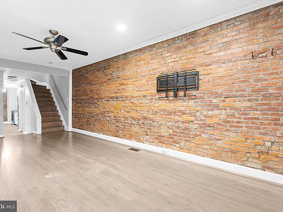 Charming 2 Bedroom, 1 Full Bath, and 1 Half Bath Brick Rowhome in Canton boasting an open-concept living space adorned with hardwood floors and eye-catching exposed brick throughout. The updated kitchen features sophisticated yet sleek concrete Countertops, luxurious marble Backsplash, top-of-the-line Stainless Steel Appliances and crisp white Shaker Cabinets. Conveniently located on the main-floor is the laundry room and a nice half bathroom. On the upper level are two generously-sized bedrooms. The larger room at the front of the house offers a tranquil retreat with a large walk-in closet, while the second bedroom towards the rear offers gleaming hardwood floors, custom trim work and access to a rear balcony. In the upstairs hallway between both bedrooms is the spacious updated full bathroom with a tub-shower combo. There is also a fully fenced rear patio with a small shed that you can garden or entertain in. The unfinished basement provides ample storage, allowing you to keep your living areas clutter-free and organized. The home is also perfectly situated near I-95, Target, Harris Teeter, as well as an array of vibrant restaurants and bars of Canton Square and Brewers Hill.