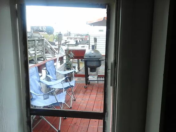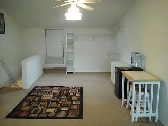 It is a large lift size of two large rooms with 4 sunny windows and a skylight window and a patio door to the roof top patio. Size of a studio. It is on upper level floor all to yourself. Carpet and large closet with shelves and furnished. I can do unfurnished also.