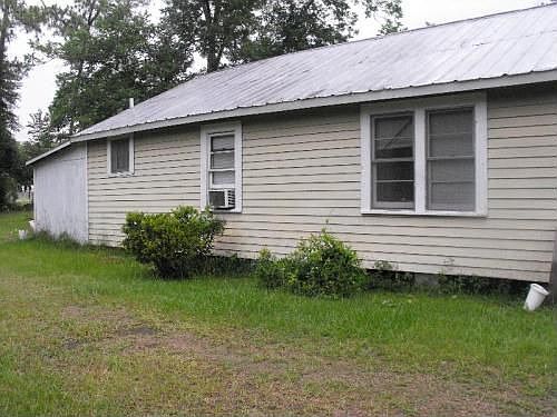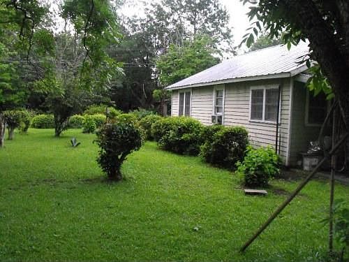 Cute little 2 bed/1 bath home with tin roof for those rainy nights. Total electric, but can be hooked up to city gas. Approx 3/4 acres with 9 pecan trees, barn in back.