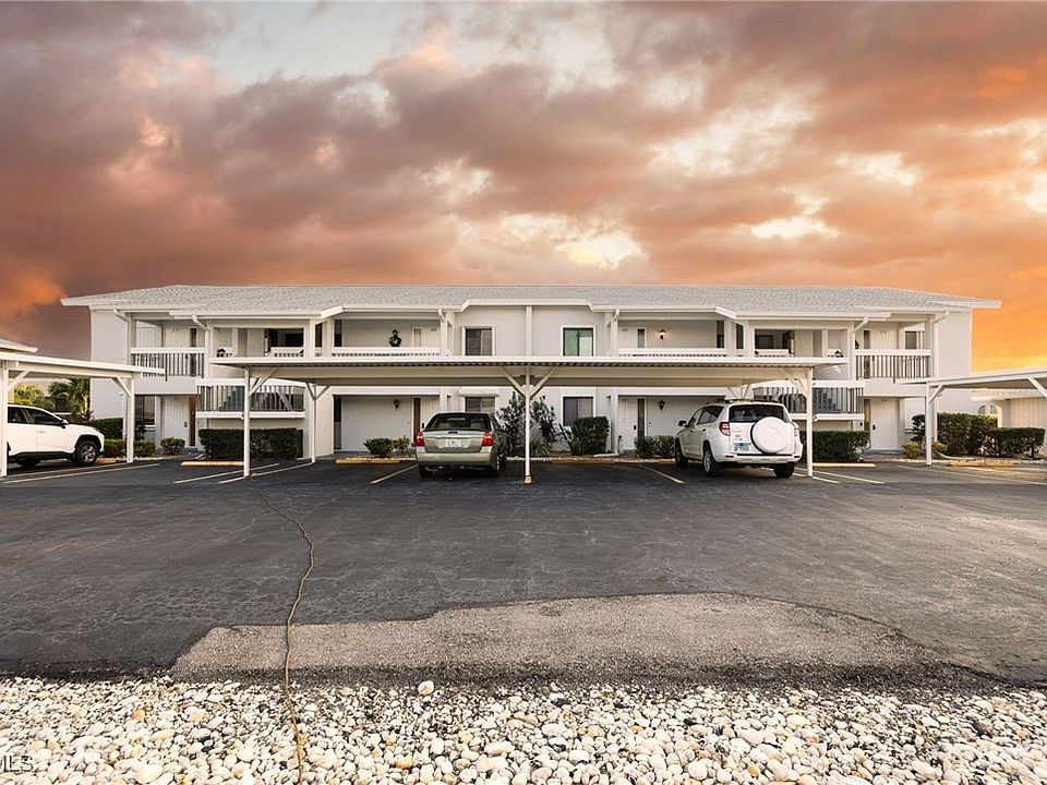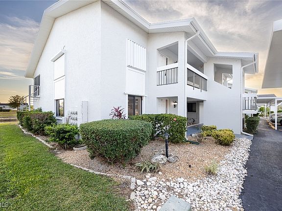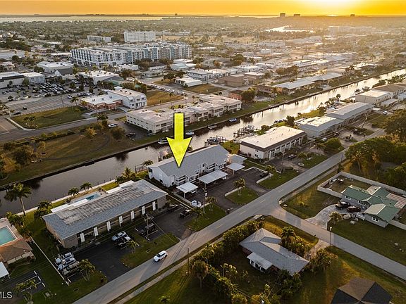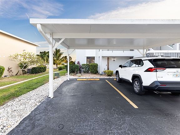 Spacious and full of potential! This first-floor 2BR/2BA Gulf-access condo features sunny southern exposure, an end-unit layout with extra natural light, a large living room, and a dining area perfectly sized for a 6-person table. Additional highlights include impact-protected window and all over hurricane coverage, inside laundry, an eat-in kitchen, and a screened lanai. The primary suite offers lanai access, a walk-in closet, and an ensuite bath with a walk-in shower. Assigned carport plus guest parking just outside your front door. Harbor Castle is a privately run HOA offering a heated pool and opportunity to add a boat slip. Just steps to Downtown Cape Coral—restaurants, bars, shops, farmers market, and more. Priced to sell and ready for your updates.