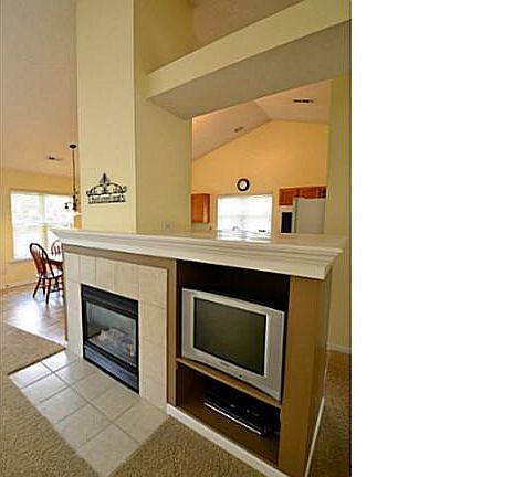 Immaculate! Split bedroom floorplan in awesome condition! Private, level, fenced, yard with oversized patio backs to trees. Laminate floors in foyer and new, upgraded carpet t/o. Great room w/ vaulted ceiling, ceiling fan, gas log fireplace, & media niche! Spacious kitchen w/ lg dining area. Island w/ bar seating, tons of cabinetry & countertop space. Vaulted ceiling in master bedroom, Lg WIC.