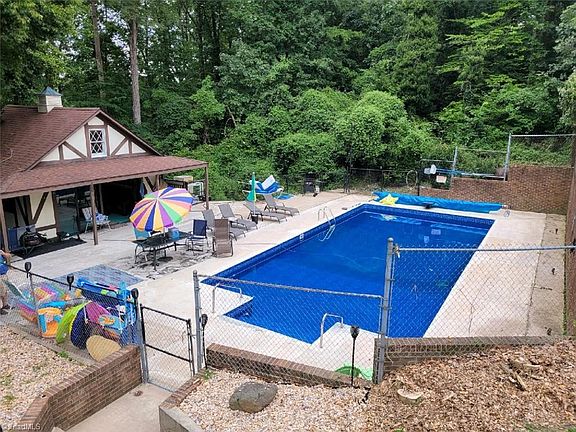 This property was built for Entertaining! Beautifully updated Tudor Style home featuring hardwoods on main, 4 large bedrooms and 3.5 bath, updated basement that can be used as an In-Law Suite, Game Room or Family Room and also offers a partially finished Craft Room or Wood Working Shop. Walk outside and enjoy the outdoors in privacy with the updated 40x20 swimming pool and Pool House, New Pool Liner, New Pump and Filter in 2021. Roast marshmallows around the fire pit in the evenings and watch the deer in the mornings off of the 52x12 Custom Deck. Recent updates are New Carpet upstairs, new tiled bathrooms upstairs, new paint in bedrooms, updated Corian Countertops, new Micro/Oven Combo, new cooktop, new Vinyl Plank flooring with additional kitchen in basement and new hot water heater. Included is a separate deeded lot ready to build on. 1.7 total acres in the city close to High Point Country Club, shopping, dining and Furniture Market. Great Peaceful Neighborhood. NO HOA!