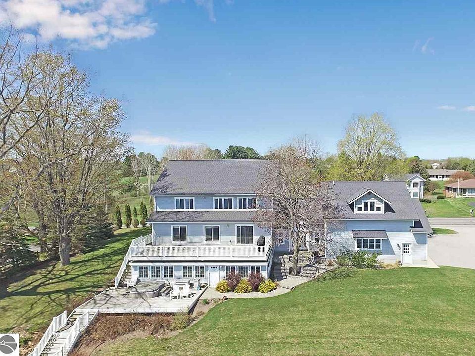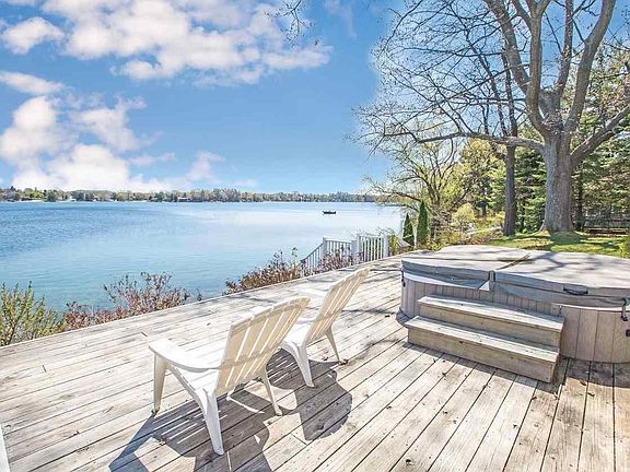 This Newly updated and remodeled 4 BD, 5.5 BA home features 189' of sandy bottom frontage and panoramic views of beautiful Silver Lake. A 3 car garage and theater were completed in 2011 and perfectly compliment the bright & open floor plan, beautiful birch hardwood floors, new kitchen with maple cabinetry, and a 40ft deck overlooking the water. There are stone fireplaces on both the main and lower levels.The lower level (walk out) includes an amazing movie theater room w/wet bar and enough room for the whole family to spread out and enjoy the movie, spacious family room, bedroom, full bath, and kitchenette. Other perks: Jetted tub, walk-in closets, and new windows throughout... so you can drink in the spectacular lake views from almost every room!