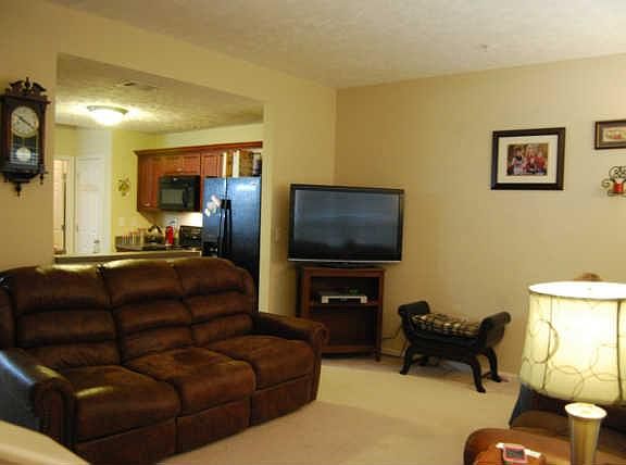 Great end unit "courtyard" floor plan with private outdoor patio. Each bedroom has walk in closet and private bath. Pool, community center and workout room. Easy access to I-65