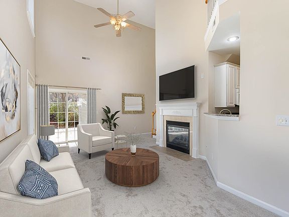 *Price Improvement* Southwest Durham for under 400k! Open concept plan with soaring cathedral ceilings in the living room and first floor primary suite. Updated kitchen with granite and new stainless steel appliances. Updated primary bath featuring walk-in tile shower and floors. Separate dining room with oak hardwoods. Private custom stone patio and covered rear porch adjoins undeveloped common area in rear and side yards. Roof replaced in 2021, Hot water heater replaced in 2022, new carpet, fresh paint, and more! Just seconds to the renowned American Tobacco Trail & Woodcroft Trails. Minutes to downtown Durham, RTP, and I-40!