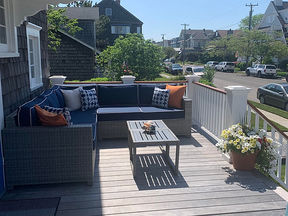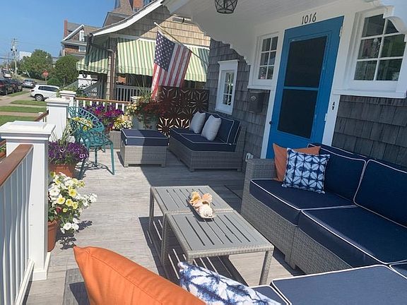 Ocean Views from every floor and fabulous location highlight this beach block pristine Cape May home. This home features original craftsman millwork and upgrades as well as many modern enhancements. A beautiful, classic Dutch colonial with stunning Bermuda shutters has been professionally decorated throughout the entire home by First Street Studio. Upgrades to the home include: 3-year new cedar roof, Trane, multi- zone central HVAC system, updated kitchen with hardwood floors, Solid surface countertops and stainless-steel appliances, recently updated bathrooms and freshly painted coastal color rooms along with many historic details incorporated with modern amenities. Offering 5 bedrooms, 2 full, 2 half baths you will have plenty of room for family and guests. Step inside the living room with original built-in bookcases, grand staircase and original woodwork and enjoy the open floor plan leading to the large dining room and spacious kitchen complete with back staircase. The sunny laundry room offers a modern half bath, additional storage and secondary entrance. The second level has a wonderful master room with hardwood floors, private bath and dressing area. This level also offers two additional large, bedrooms and a second updated full bath with granite countertops and double sink. The third floor offers two spacious bedrooms with oversized, updated, half bath. The stunning, quintessential Cape May front and back porches offer retractable awnings for enjoying your morning coffee or afternoon nap while listening to the ocean waves. The private, fenced in backyard includes mature trees, stone patio with grilling area, beautiful garden complete with fig tree, blueberry bushes, herb garden and hydrangeas along with a large lawn for those family evenings of activities. There is off street parking for 2 cars and street parking for guests. This home also offers a full basement for storing all your bikes, patio furniture, surfboards, kayaks, beach gear and gardening essentials. Just steps to Queen Street Beach, the Boardwalk, and walking distance to downtown.