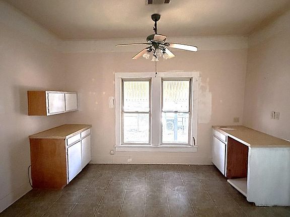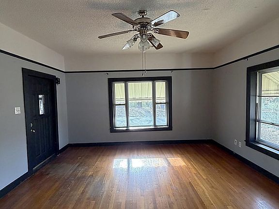 This inviting home offers a flexible layout with charming details and outdoor features to enjoy. From the welcoming front porch, step into the living room featuring original wood flooring. The space flows into the kitchen and dining area, then straight through to the laundry room. Beyond the laundry room is a versatile flex room, with a private bedroom and full bathroom located to the left. Across the flex room, a hallway leads to a second full bath and an additional bedroom that wraps back into the living room, creating a connected and functional floor plan. A deck off the first bedroom overlooks a fully fenced backyard with two storage sheds and a storm shelter, offering added storage and outdoor utility. With multiple living spaces and room to personalize, this property presents an appealing opportunity for buyers looking to make it their own. Find this property at HUDHomestore.