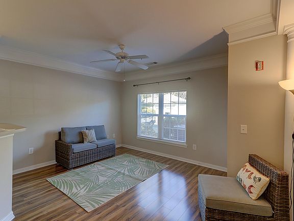 Close Quickly - Move Now! Paint has been refreshed, bedroom carpeting professionally cleaned and pre-inspection has been completed at this ground level unit. Building offers ramp access from parking area. Owner says refrigerator, countertop microwave, washer, dryer and all window treatments at property are included. One-year American Home Shield Warranty conveys to Buyer at closing. Work? Just minutes to reach the James Island Connector for MUSC or VA at City of Charleston Medical District, campus of The Citadel or College of Charleston, City Marina or Folly Road to local Golf or Beach recreation and West Ashley. Pergo(r) & tile flooring add ease of flow throughout open concept kitchen & main living spaces for office or dining use.Do not miss a huge walk-in pantry that is over 4'x6' great for storage of seasonal supplies! The multi-purpose raised kitchen counter is a perfect space for additional seating for on-the-go lifestyles or provides a buffet service area to entertain. Take notice of the natural light and views of nature's seasons as you relax. Living area is expanded by a screened porch complete with ceiling fan & porch light. The bedroom is comfortable with walk-in closet, window, and direct access to the screened porch. A large tiled bath has new contemporary lighting. Vanity width is 31" and its height clears over 26" for additional under counter storage space. A Garden Tub and Shower combination offers an offset water and temperature control for easier reach. A lighted hallway Laundry Nook offers tiered shelving. Reduce your commute and make time to recharge at the amazing Clubhouse Amenity Center -- swimming pool, fitness center, and outdoor grill area to mention a few benefits. There is also the luxury of a grocery market shopping center that offers banking, restaurants, and retail nearby! This condominium unit offers enhanced mobility features but whether it would conform to ADA guidelines is unknown. Building 1000 roof was replaced in recent years. (Approximately 2016). Windows at #1016 Telfair Way are impact-resistant vinyl & were water tested for leaks after installation. On-site PM says monthly regime covers trash pickup, pest control, common area maintenance, flood & fire; tenant homeowner insurance or flood policy is not covered by Regime and that landscaping will be done after all buildings have been completed. Buyer responsible to verify for Due Diligence & Schools Available to Attend/Subject to Change. Listing agent is related to Seller.