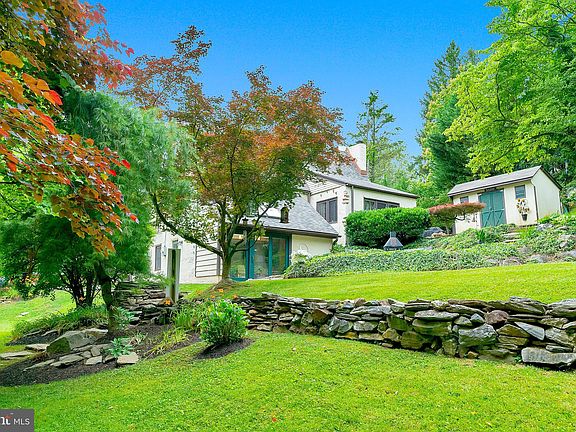 Nestled in the valley of Gulph Mills Village along Trinity Lane sits an enchanting home like no other. Imagine stepping into your own modern day Fairytale! A serene landscape with lush greenery and natural hardscape create intimate areas throughout the property for sitting and watching the amazing wildlife that are drawn to the creek such as, hawks, blue herons, fox, deer, owls, rabbits, turtle, frogs and if you are really lucky you will see the mink that visits from time to time. Two separate patios to enjoy small gatherings or the hidden spot under the evergreen's to read or just relax in a hammock on a hot summers day. Step inside this magical home to truly capture its charm and history. The original front door is a reminder that this home was once part of another era yet is still cherished by its present day care takers. The Great Room is the heart of the home showcasing original wide width hardwood floors, wood fireplace with blower, large mantle and the built-in shelving is somehow dwarfed in comparison to the A frame ceiling with a height of 16 ft showing off the exposed beams and loft area above. Through the glass french doors is a pretty sunroom filled with natural light, terra cotta flooring and gorgeous views making it a perfect Dining Room. A little breakfast area , brand new quartz counter tops, all new stainless appliances and 3 pane bay window overlooking the creek are a perfect match to the black cabinetry in the Kitchen . Full bathroom has clawfoot tub with restoration hardware rain shower head and handheld for your convenience. Two great sized bedrooms finish this main level. Take the staircase to the loft area overlooking the great room and you will find two adorable bedrooms. The first is the original primary bedroom complete with steep rooflines and a two piece bath making it a a great guest room or young adult bedroom. The sweetest bedroom is right next door with its steep rooflines and original arch window making it so cozy. Another flight down to the walk out lower level is a light filled sitting room with gas fireplace, glass slider and two sky lights. New luxury vinyl tile make it a breeze to clean and no scratches! The primary suite is situated behind the double doors and is the perfect retreat at the end of the day. The huge shower with seamless glass door, two benches, rain shower, handheld and a multitude of sprays. Laundry room and storage area finish this level. Radiant flooring in kitchen, lower level and both bathrooms. One small shed for garden tools and a very large custom made shed for larger items such as lawn tractor or motorcycle. Home is situated between Gulph Mills off-ramps, on-ramp and Henderson Rd on-ramp. Easy access to all highways. Will you be the next caretaker of this exceptional home? Showings begin at the open house on 6/25 11am - 2pm.