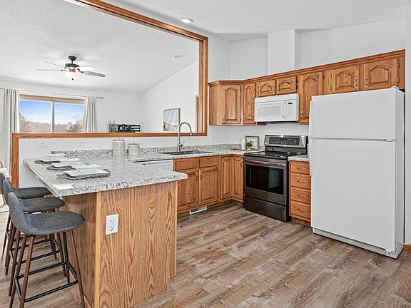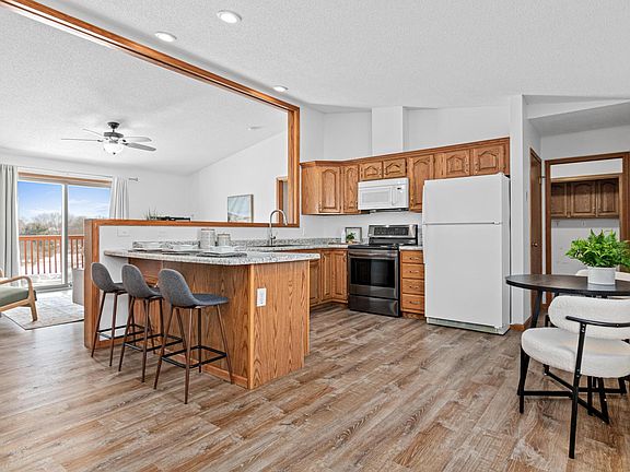 Welcome home to this beautifully updated 5-bedroom, 3-bathroom twin home with the best sunrises right off your deck. Wake up to peaceful views that never get old, thanks to a permanent green space behind the property, no homes directly behind you, just open skies and natural beauty. From the moment you step inside, you’ll love the bright, open-concept layout filled with natural light, ideal for everyday living and entertaining. Designed for effortless living, this home features all amenities located on the main floor and expands your living space with a finished walk-out basement that includes a generous family room, two additional bedrooms, and a bonus room. Two outdoor living spaces extend your enjoyment: an upper deck off the living room and a walk-out lower-level patio, both perfect for taking in the scenery. This move-in ready home features thoughtful updates, including luxury vinyl plank flooring in the living room, kitchen, and laundry; new carpet in all bedrooms and the basement; a remodeled lower-level bathroom; many new windows, two new patio doors and a new kitchen sink. Additional upgrades include ceiling fans in every bedroom and refreshed outdoor living with new deck boards and stain. With a spacious insulated 2-car garage, generous living areas, and a tucked-away setting just minutes from all that New Richmond has to offer, this home is ready for you to make it your own. Schedule your showing today!