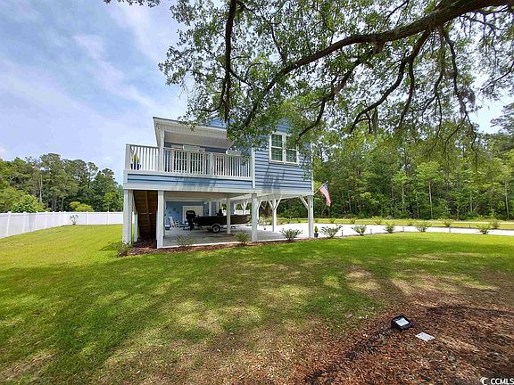 Live on vacation every day in in this custom home completed in 2021. At 1016 Wachesaw Road you are at the middle point between the Inlet and the Intracoastal Waterway. The home sits on a large half acre lot with beautiful, mature live oaks. The inside of the home features a floor plan with split bedrooms and an open living/dining/ kitchen area. There is LVP flooring throughout the home along with granite countertops. Don't you love the interior furniture, good news, it comes completely furnished! Completely furnished if you'd like. Downstairs has a large 3 bay parking area with plenty of room. If you need some additional square footage or an in-law suite, you're in luck. There is a downstairs 18x18 room that just needs sheetrock and fixtures then its ready for living use. The electrical and plumbing is in place. The zoning district allows for a detached accessory building up to 900 heated square feet(no size limit on garage space). On this large lot you will have plenty of space for your boat, RV, trailer, or party parking. There are current plans in place on the bike path extension from the BUS 17 side of Murrells Inlet. That means you'll be able to bike or walk from this home to the Marshwalk, Huntington Beach, AND Pawleys Island, all by means of the bike path. The path will stretch to the end of Wachesaw Road at Wacca Wache Marina.
