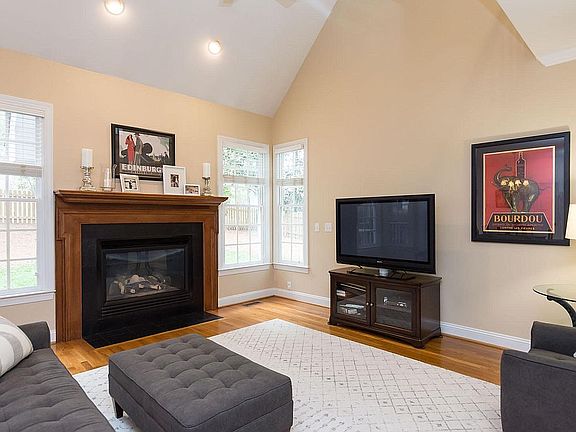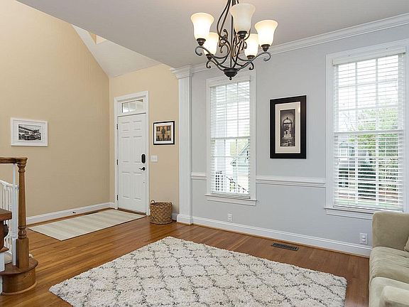 Move right in to the absolutely charming Homes by Dickerson custom built beauty with a first floor master! You want new - you got it - all new black stainless appliances! New paint, new light fixtures throughtout. Open floor plan/large white kitchen w/granite counters. Private fenced backyard w/screen porch & deck. Security system, irrigation, hardwoods in main areas downstairs & 1 year old carpet in remainder. 4th BR can be a bonus or Media room. Block away from entrance to greenway! Quick to I-540.