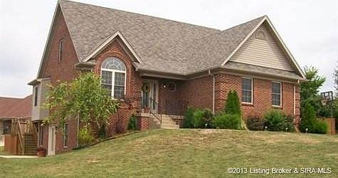 Move-in condition - possession at closing - great neighborhood - one owner 4 BR, 3.5 BA brick home on almost 1/2 acre lot. Inviting foyer entry leads to center great room with overlooking balcony & gas fireplace. Formal dining room & foyer have hardwood floors. 1st floor master. Eat- in kitchen with breakfast bar, A finished side w/o basement offers 4th bedroom, full bath, family rm & storage. 2 car side entry garage. Also a deck that overlooks a private fenced in backyard with a 10 x 16 shed on a concrete pad. Shows beautifully with pride of ownership. Sq ft & rm sz approx.\n\nInformation Deemed Reliable But Not Guaranteed. Information provided by the Southern Indiana REALTORS® Association, Inc. © 2010 SIRA Multiple Listing Service. All rights reserved. Brokered And Advertised By: Schuler Bauer Real Estate Services ERA Powered (NA) Listing Agent: Jane McWhorter