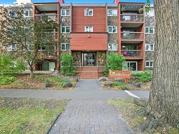 Best Value in Central Edmonton! Welcome to the Chanticleer! This Beautifully renovated 2 bedroom home boasts over 1200 sq ft! Renovated kitchen with gorgeous white cabinetry, quartz countertops, SS appliances and new tile backsplash. The bedrooms are at separated by the massive living area at opposite ends of the home and each has it's own large closet and full bath. Situated on the ground floor for ease of access, the unit is private and secure as it faces the serene central courtyard, with access from both the main living area and the bedroom with huge patio doors. Numerous Additional upgrades include new vinyl flooring, light fixtures,a timeless and cozy wood-burning fireplace and new paint throughout. Well-managed complex offers underground parking, in-suite laundry and plenty of storage including a locker in the parkade. This spacious unique home has no neighboring unit on either side and is located in one of the nicest pockets of downtown our city has to offer. Quiet building allows 1 cat per suite