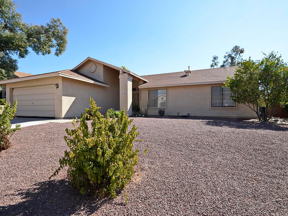 (PLEASE DON'T LET THE KITTY CATS OUT) THANK YOU! East Tucson Established Neighborhood Close to many, many stores & services to make you feel right at home, right away! PLUS- NO H.O.A...YAY! Lots of Owner improvements to Enjoy!!!They have done upgradingin the bath rooms a few years ago. Just RECENTLY PAINTED the EXTERIOR! GRANITE COUNTERTOPS in the KITCHEN & on the DATA center counter top in the hall. The back yard has many beautiful plants, flowers, fruit tree and more! You know how long it take for plants to grow in the Tucson Desert! The Vaulted Ceilings make this house live a lot larger than 1,557 sq. ft. Don't take my word for it, please view our photos & give us a look! There is a Leased Solar System! bEAUTIFUL TILE FLOORS! Fountain stays!Except, bathrooms & mstr, closet...