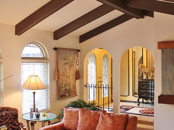 Very unique with Spanish flair. Complete high end upgrades in this awesome tri-level w/4 beds & 3 baths. Formal living & dining rooms adjacent to country kitchen w/new cabinets, appliances & granite counters. Eating area overlooks huge FR w/brick fpl. Upper has master suite w/updated bath, 2 bedrooms & updated 3/4 bath off hall (add your own shower). Lower has 4th bed or study, laundry & another updated 3/4 bath. Take a few moments to stroll thru this incredible yard. Multiple patios & sitting areas, waterfall, backing to greenbelt within walking distance of pool and tennis. Very private & inviting. Mature plantings & surprises at every turn. Double pane windows, roof, furnace & hot water heater are all newer. Quiet culdesac, easy commute to Turnpike, close to all shopping but very secluded. Most furniture & décor items for sale. Estate sold as is but very well maintained & lovingly cared for. Original owner. Prestigious neighborhood! Show me Sell me