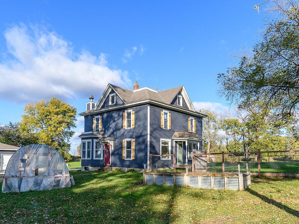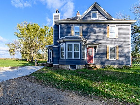 Discover your own private haven in this lovingly maintained 1910 4-square farmhouse, situated on 5.2 acres in Cannon Falls. This 3-bedroom, 2-bathroom home combines historical charm with modern updates, including a new septic system and roof from 2019 and a freshly paved driveway and finished garage in 2022. New stove, refrigerator and microwave installed in the kitchen in 2023. House and garage freshly painted in summer of 2023.