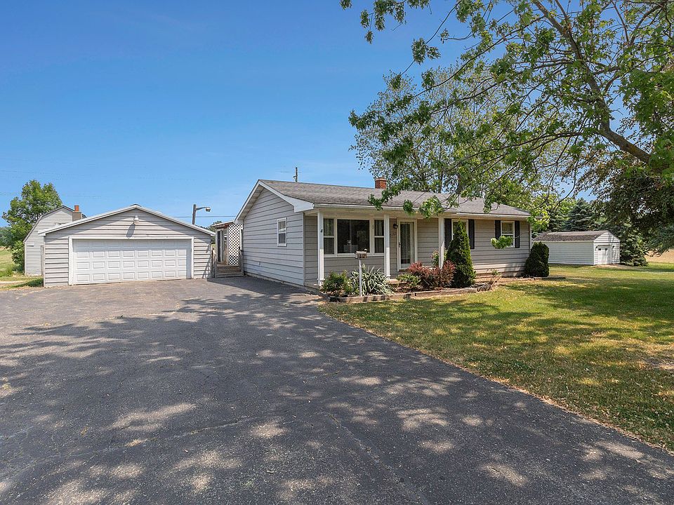 Welcome to this serene ranch style home nestled on a peaceful piece of land. As you enter, you'll be greeted by an inviting living room flooded with natural light streaming through the large windows. The living room seamlessly flows into a spacious eat-in kitchen, boasting plenty of cabinet space to store all your culinary essentials. Convenience is key in this home, as the full bathroom conveniently houses the first-floor laundry facilities. The main level of the home features three tranquil bedrooms, whether it's a master bedroom, a guest room, or a home office, you'll find versatility in these inviting spaces, allowing you to personalize each room to suit your needs and preferences. An unfinished basement offers ample storage space, or a blank canvas with opportunity to finish as you desire. Stepping outside, a spacious deck awaits, with an enclosed and private porch providing the perfect area to relax and enjoy the scenery. Schedule a private tour and view this home today!