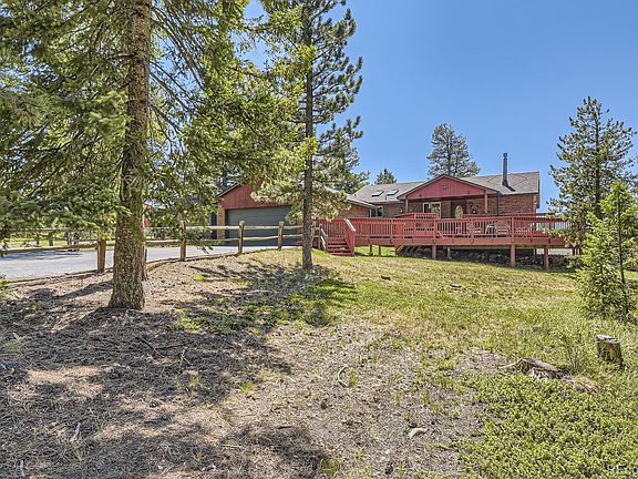 MOUNTAIN SERENITY in this 4 bedroom, 3 bath home on 2.13 acres with beautiful mountain views. This all brick home means very little exterior maintenance. Enjoy warm, cozy winter evenings next to either of the 2 gas burning stoves. Enjoy the cool summer evenings on the over 400 sq ft deck that has just been refinished.. The kitchen features all new appliances! New class 4 roof installed in 2023 including transferable warranty. New windows were installed in 2021. Generac home backup generator installed in 2021. This home is in close proximity to outdoor activities like hiking in Flying J Open Space and Maxwell Falls. Property backs to State land. Conveniently located minutes away from shopping, restaurants and top-rated schools. Seller providing Buyer with 12 month Home Warranty. Seller installed state of the art Pedrollo PD3 booster pump to well system in Feb 25. Back on the market! Contingent sale fell through.