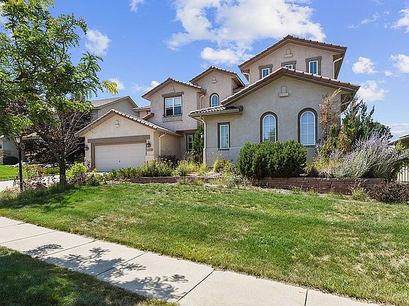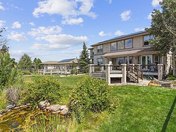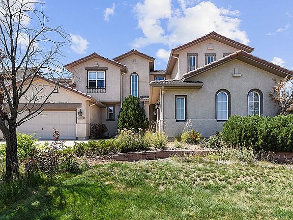 This home is located in the coveted Pine Creek neighborhood of North Colorado Springs on the Pine Creek Golf Course with a stunning view of Pikes Peak and front range. Incredible 5 bed/4 bath 2 story with finished basement and oversized 3 car garage. Fenced in backyard with huge composite deck and water feature and fire pit * 9ft ceilings * Formal dining room with butler 's pantry * Large gourmet kitchen with granite counters, desk, nook * 4 gas fireplaces (2 on main level, one in master and one in basement) * 3 car garage (2car + 1car) *Home is Powered by Tesla solar, Free EV charging for electricity for car charging and 3 months electric bill is access charges only* Built in speakers on every level * Private Executive office space with rich wood paneling *Beautiful Hardwood floors throughout main * New Carpet in basement * 5pc master bath with jetted tub, shower and double vanities and Heated tile floors * Huge master suite with sitting area and fireplace *Hard to find 3 more upper level bedrooms with walk in closets * Basement has a large entertaining area, wet bar, 2 bedrooms and a full bath * 2 gas furnaces* Fully landscaped * Perfect home for multiple generations* It is just a quick drive from the Shops at Briargate, shopping, restaurants and entertainment along the Powers Blvd corridor as well as access to I-25, Interquest, and Black Forest. Move in Ready * A must see!