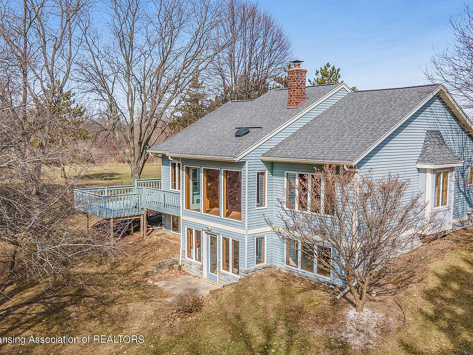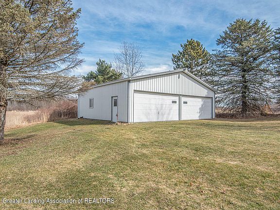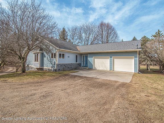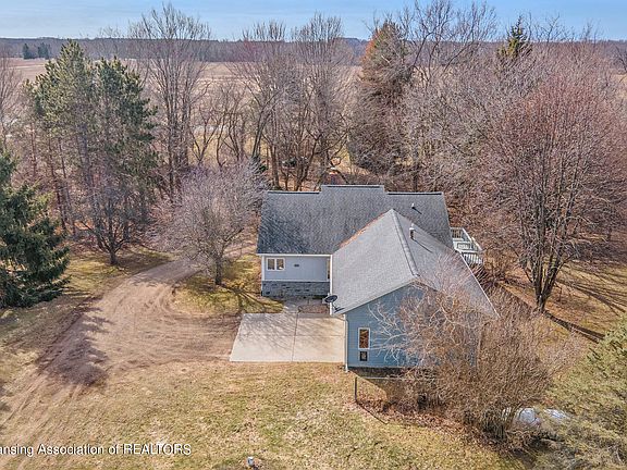 Welcome to 10162 W. Herbison Rd., Eagle, MI 48822! This custom built energy efficient contemporary home features approximately 2500 sq. ft. of comfortable living space. The main level represents an open floor plan with uniquely energy efficient brickwork on the wood burning fireplace, passive solar lighting, primary bedroom and bath, laundry, cedar wall sun room with brick flooring to absorb heat, Mitsubishi wall mounted A/C, and a beautiful wood paneled den with built in shelving. Other impressive features include: a private deck, 2 lower level bedrooms with a full bath, rec room, and warm sun room. There is a full two car garage, a 32x40 pole barn with a heated workshop that incorporates a dust collection system, and all of this is situated on 3.4 rolling acres on a black top road! Bonus, morel mushrooms and sand-hill cranes!