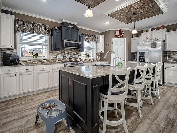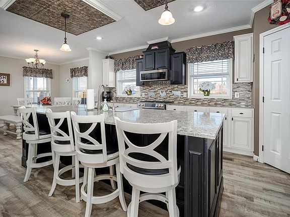 Discover this move-in-ready 4-bedroom, 3-bathroom manufactured home on a spacious 2.4-acre lot with a pool. Offering 2,542 square feet of living space, this home features charming brick skirting, three convenient entrance doors, and a large back porch perfect for outdoor seating and relaxation.