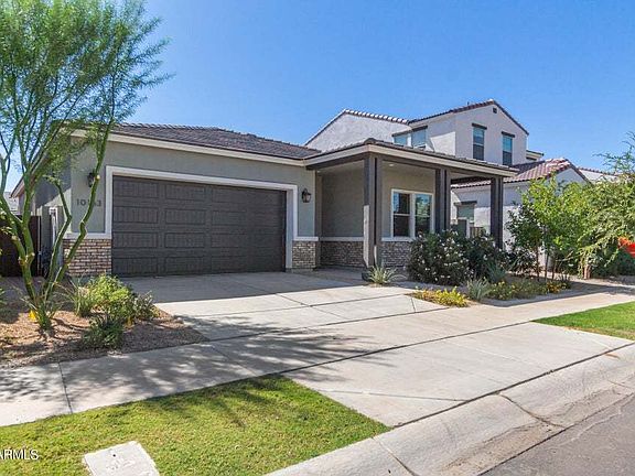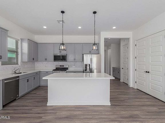 This almost new home, built in 2021, is ready for a new occupant. Available for a lease start date of 08/19/24. Great curb appeal, with a cozy front porch and a 2-car garage. A wide hallway invites you into the great room floorplan with soaring ceilings. Wood look vinyl plank flooring throughout, modern light fixtures, recessed lighting and no carpet! The kitchen boasts a large island, quartz countertops, grey shaker cabinets, breakfast bar, pendant lighting, stainless steel appliances and ample cabinet space. Perfect indoor/outdoor living with an oversized sliding glass door. The master suite has a dual sink vanity, oversized shower and a walk in closet. The backyard features low maintenance rock landscaping and a covered patio. The tenant will enjoy all of the amenities Cadence at Gateway offers including playgrounds, pool and more. Sorry, no pets.
