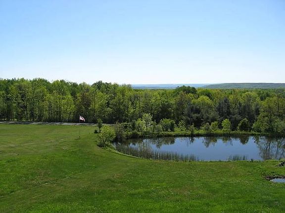 Your own little piece of paradise with beautiful views of the surrounding hills over your own pond. Plenty of room to roam on nearly 17 acres that are partially wooded with two fields--hunting just steps from your back door. Open living space with vaulted ceilings and skylights. First floor laundry. Partially finished walkout basement for added living or recreational room/man cave. Large 2 car garage makes for the perfect workshop. Private and peaceful.