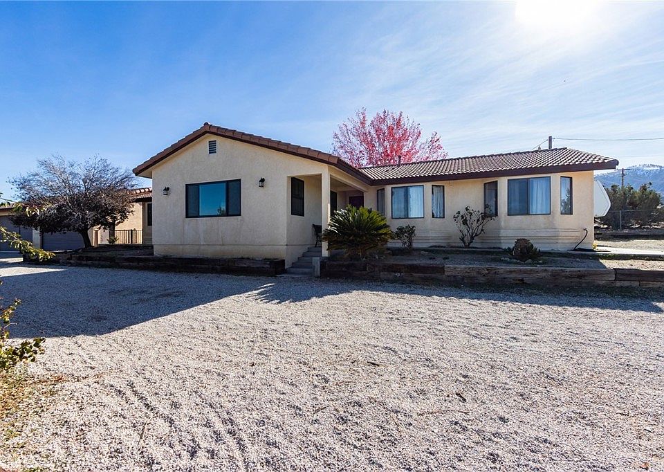 Nestled on the desirable south side of Piñon Hills, this ranch style remarkable 4-bedroom, 3-bathroom homestead offers a blend of modern comfort and country charm. The recently remodeled great room features a spacious granite island, stainless steel appliances, farm house sink, and an expansive living area complete with a cozy wood-burning stove. The home also includes a convenient indoor laundry room. Primary suite offers plenty of space with ample storage in the primary bath.