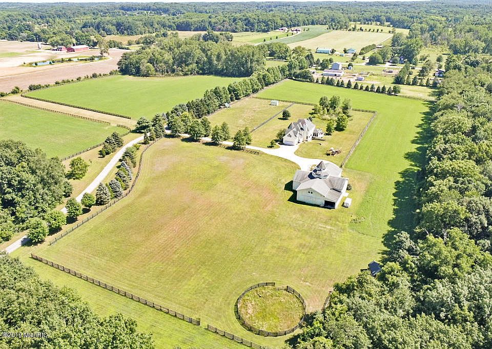 Country getaway on 40 acres with soothing vistas of wide open lawn, fenced pastures and mature woods located in the popular 1000N corridor in the rolling hillside of Galena Township just 75 minutes from downtown Chicago. With a basketball court, indoor putting green with golf simulator, 6-stall barn, pond & acres of land for hiking, this is the ultimate laid back retreat for nature lovers, sports enthusiasts & equestrians to enjoy year-round. This 4BR+ home was renovated in 2013 creating a comfortable, light filled home with all the amenities you've come to expect and appreciate. Home theater and fitness room, recreation room with wet bar, covered front porch and wrap around decks, screened porch