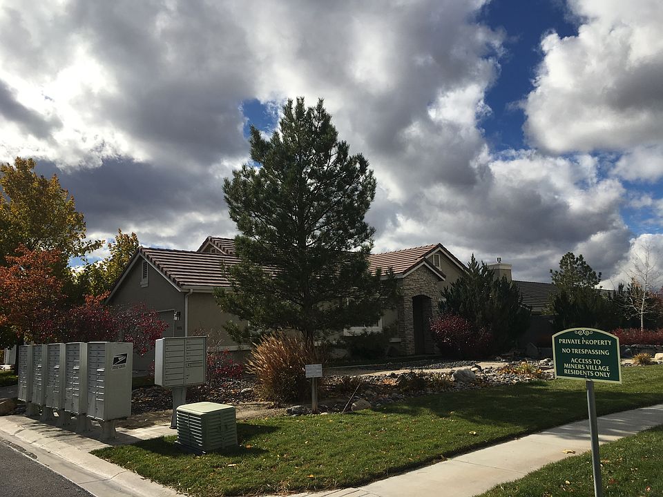 Buyers and realtors, please make sure to read all the way through, as there is very important information. This home was the pick of the litter, geographically chosen next to a beautiful green belt, situated in this prime 55 and older gated community of Miners Village in South Reno, NV. And just a 2 minute walk away from the club house, pool, hot tub and gym. Custom painting with very attractive color scheme has been done in kitchen, living and dining area, hallways and guest bath. The back yard is low maintenance with river/cobble stone, and some trees and shrubs on a watering system. There is a lightly colored cement patio and built in awning in the back yard, with a small view of the Sierra Nevada mountains. There is also a beautiful community park within a 3 to 4 minute walk. The park has a baseball diamond, basketball court, swing set, jungle gym, tables and picnic areas. There are large grass areas for doggy playing, and or training, and miles of walking paths interconnected from the park along local waterways. We have retained the services of a "Specialized Real Estate Attorney" to draw up the contract and fill out all forms. This will ensure a speedy escrow, without any problems. Realtors, we are offering a $5000.00 FINDERS FEE! Please do not call, unless you already have an interested client, wanting to set up a walk through time and date. The owners will perform the walk through, so all you need to do is make a phone call, or ask your client to. If your client chooses to purchase the house, our attorney will draw up a contract and fill out all the necessary paper work. The Finder's Fee will be paid to the agents broker at closing through escrow, through the normal commission instructions process. Buyers, if you choose to purchase the house without a realtor, the seller will automatically deduct 50% of the $5000.00 finder's fee off the price of the house. Buyer's, with or without a realtor only, if you have any additional questions, please don't hesitate to call. And of course, if your realtor wants to accompany you in the walk through, they are more than welcome!!! Come and choose your custom carpet color and paint for the bedrooms, as we are doing some face lifting!!! The choices will be made some time in February, so come soon and tell us what you'd like in your new home!!!