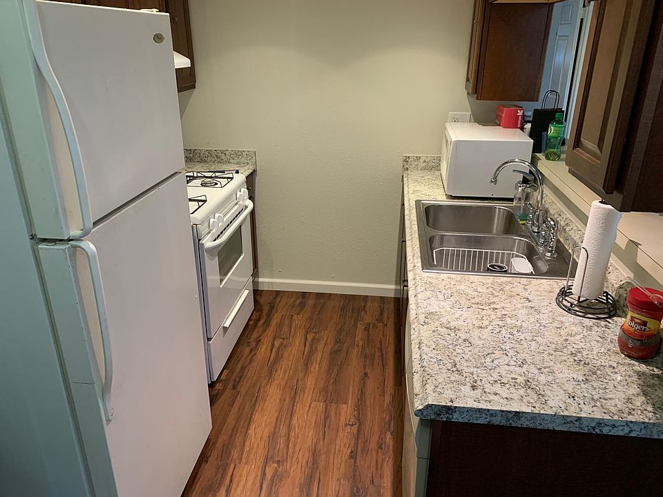 Quote street next to a elementary school . 2 car enclosed garage . Owner pays for trash and water