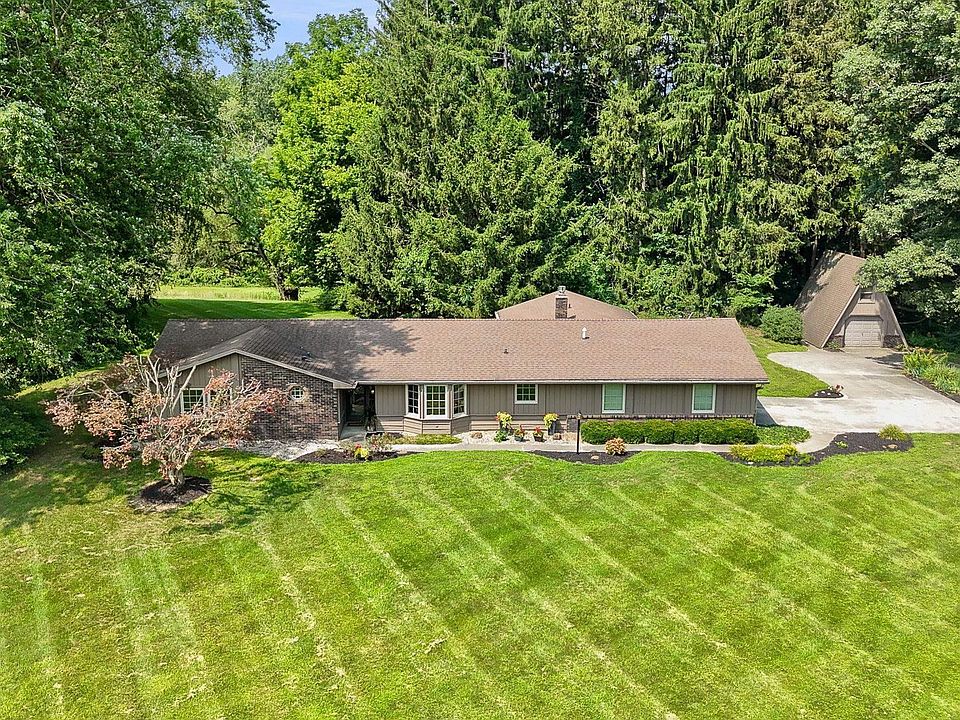 Peace, Privacy & Possibility — Come see his one-of-a-kind retreat on 4 partially wooded acres where comfort meets charm. This rare opportunity offers 3 spacious living areas, ideal for hosting, relaxing, and cozy fireside living. Step into the recently remodeled kitchen—complete with painted cabinetry, quartz countertops, newer SS appliances, and a new f-plc insert. Fresh interior and exterior paint in 2025 gives the entire home a fresh, modern feel. Enjoy the beauty of nature from dual patio doors in the Rec room, leading to an expansive side deck and a tranquil back patio with serene, pasture-like views. Windows all around bring in natural light and frame breathtaking vistas of local wildlife--deer, turkey and birds galore—your daily dose of nature's serenity. Set way back on a private drive, this property offers ultimate seclusion and the 'possibility' for pasture, pond and/or pool. 3 good-sized Bedrooms with 2 1/2 Baths. Outbldg for extra storage, plus an attached garage with a workshop and additional work room. Whether you're seeking a peaceful retreat, a nature-lover’s paradise, or just more space to grow—this home delivers the lifestyle you've been looking for. No HOA. Don’t miss your chance to own this secluded slice of heaven. Close to I469, hospitals, FWC and EAC schools.